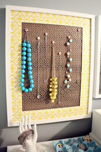 Elegant and easy to recreate, this framed jewelry holder turns organization into wall art.